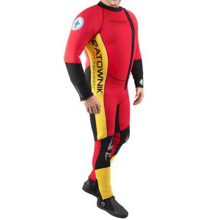 Wykonany z super rozciągliwego neoprenu, skafander gwarantuje doskonałą izolację termiczną, a jednocześnie zapewnia pełną swobodę ruchu podczas działań ratowniczych.
